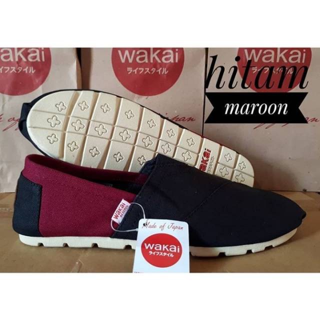 Sepatu Wakai Kasual Slip On Pria Wanita Grade Ori Hitam Maroon Shopee Indonesia